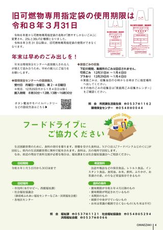 旧可燃物専用指定袋の使用期限は令和8年3月31日/フードドライブにご協力ください