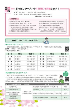 ●引っ越しシーズンの休日窓口を開設します!